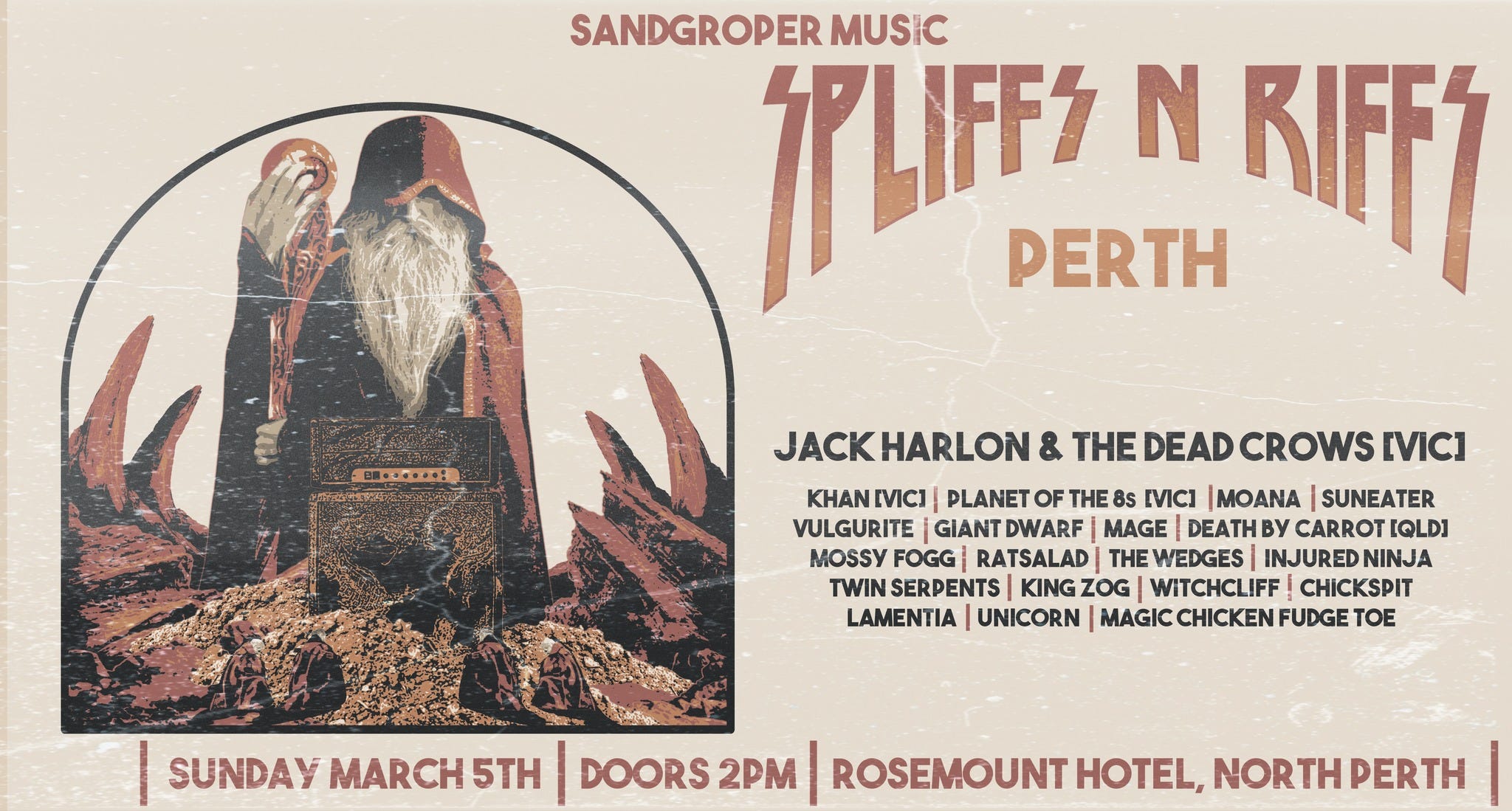 Spliffs n Riffs is a stoner-rock and doom-metal music festival taking place in Perth, Western Australia on March 5th, 2023. This one-of-a-kind event will feature a lineup of talented local and interstate artists performing the heaviest and most soulful music in the stoner-rock and doom-metal genres. With the awesome outdoor & indoor settings of the Rosemount Hotel in North Perth, which has a variety of food and drinks options, this festival promises to be a memorable experience for fans of heavy music. So mark your calendars and head down to Spliffs n Riffs in March for a day filled with great music and good vibes.